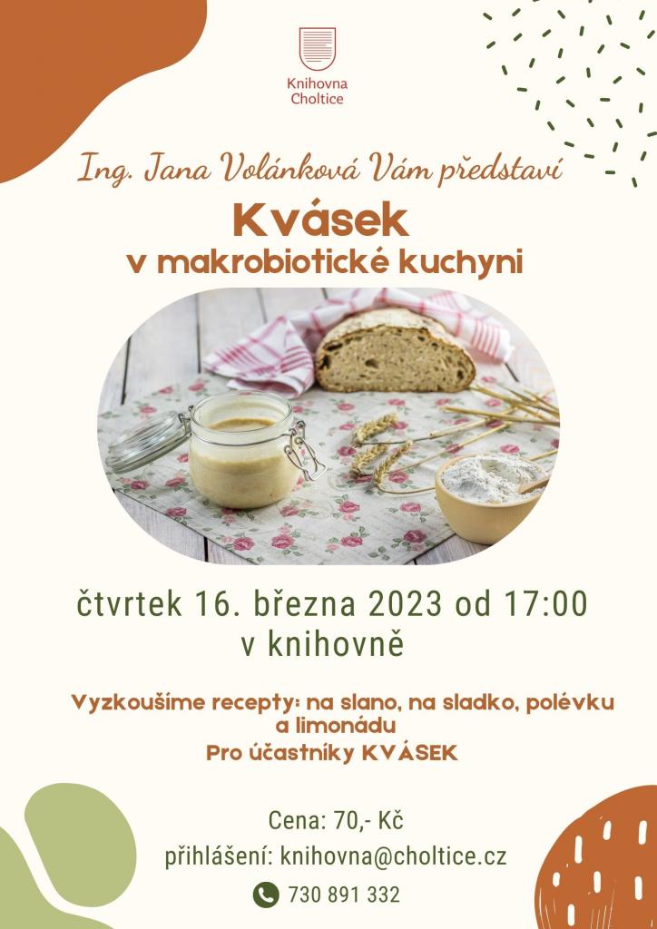 Ing. Jana Volánková nám představí KVÁSEK. Vyzkoušíme recepty na slano, na sladko, polévku i limonádu. Pro účastníky KVÁSEK.