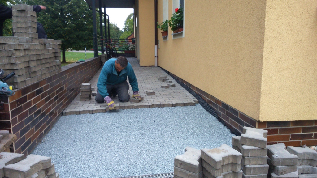 Oprava chodníků v Nádražní ulici. Michal Káles opravil nejhorší části chodníků v Nádražní ulici. Oprava spočívala v rozebrání dlažby, urovnání podkladu a znovu položení původní dlažby.
